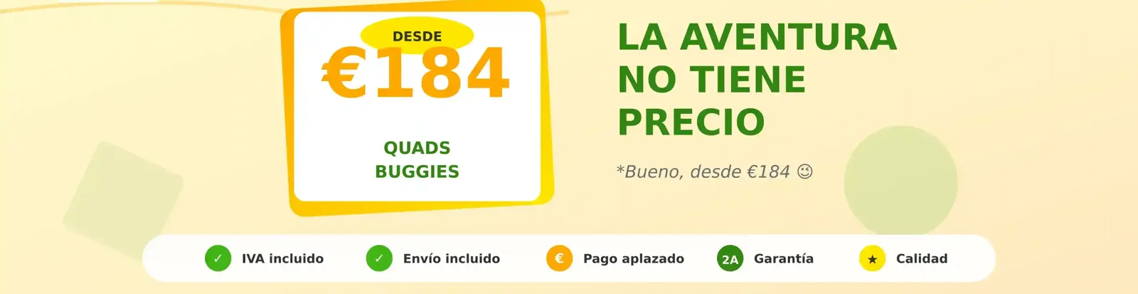 Nuestra gama de vehículos eléctricos para niños incluye desde mini quads para primeras experiencias hasta potentes buggies UTV para jóvenes pilotos. Todos con precio desde 184€, IVA y envío incluido, 2 años de garantía y pago aplazado sin intereses.